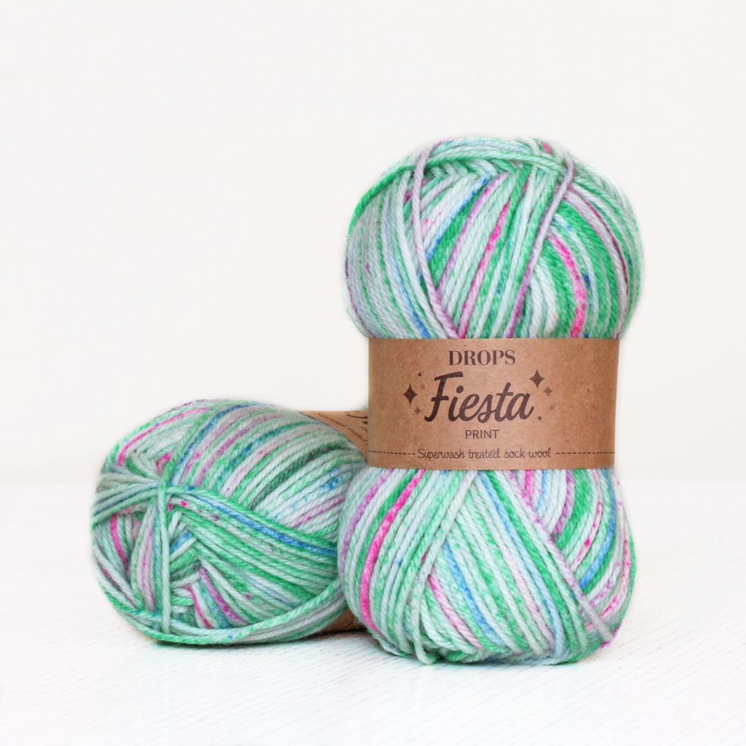 Міцна та м’яка на дотик пряжа ідеально підходить для затишних, теплих шкарпеток. А також Drops Fiesta буде чудовим вибором і для іншого одягу, такого як светри, кардигани, шарфи та шапочки.