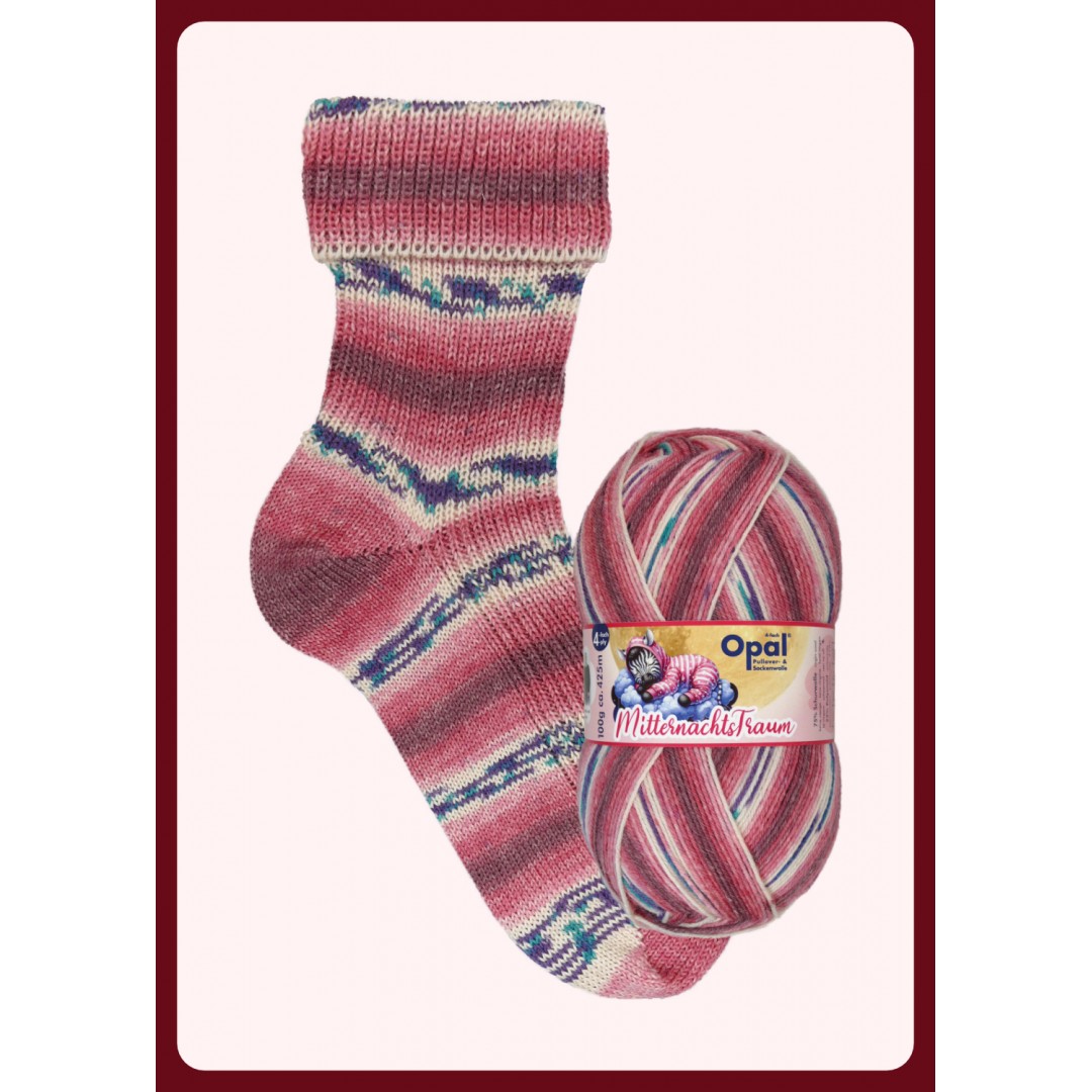 Opal Mitternachtstraum – класична шкарпеткова пряжа німецького виробника. Нова серія пряжі Opal запрошує вас у подорож мріями тварин. Вісім барвистих забарвлень розповідають історії тваринок, які бачать свої власні сни протягом ночі.