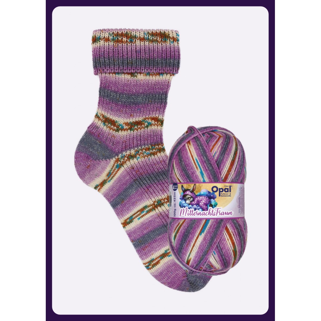 Opal Mitternachtstraum – класична шкарпеткова пряжа німецького виробника. Нова серія пряжі Opal запрошує вас у подорож мріями тварин. Вісім барвистих забарвлень розповідають історії тваринок, які бачать свої власні сни протягом ночі.