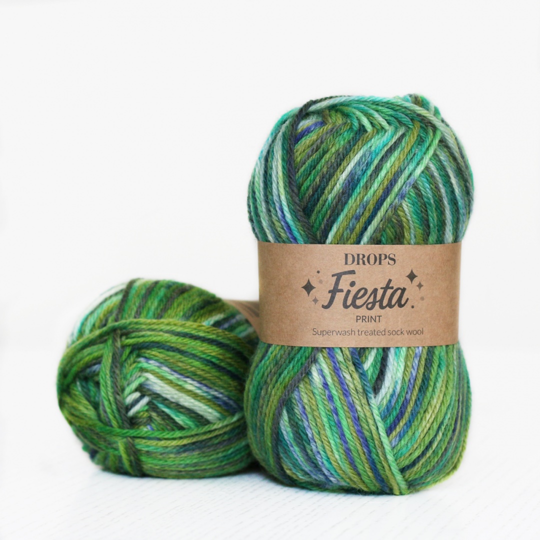 Для расцветок Drops Fiesta Print используется техника покраски, имеющая имитацию ручного крашения, поэтому провязы не будут выглядеть одинаково, а носки будут уникальными.